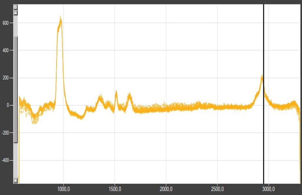 • Spectromètre WP Raman XL-Series, détecteur DD-CCD, couplé à une source laser 785 nm (500 mW), gamme spectrale 350-3100 cm-1.